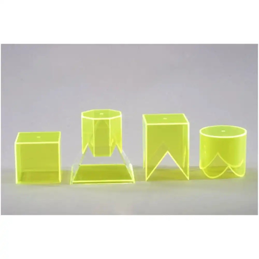Pyramid with 4 bodies to put on top: Cube, 8-sided prism, 4-sided prism and cylinder; Height of pyramid: 150 mm