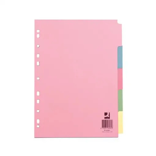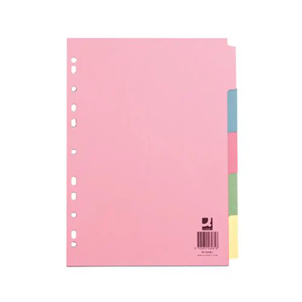 The tabs on this Q-Connect five part divider have been left blank to allow you to customise it with your own labels. Each sheet is a different colour, enabling you to colour code your documents as you wish. It has been multi-punched to fit standard A4 ring binders and lever arch files.
