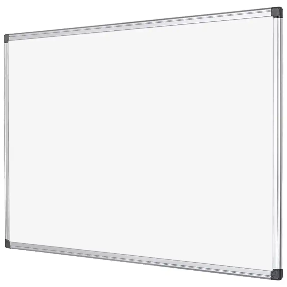 This non magnetic whiteboard is ideal for meetings and brainstorming, with a chipboard surface that is designed for clean and smooth writing. The double-sided design lets you take the whiteboard off the wall and flip it over, giving you the choice of a plain whiteboard or a faint printed square grid to aid drawing and writing. The anodised aluminium frame provides sleek protection and features a clip-on pen tray for storing spare markers. The included wall fixing kit makes the board easy to install.