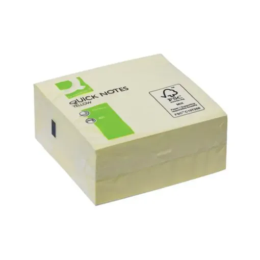 Ideal for desktop use, this Quick Note Cube is designed for long lasting use, with 400 sheets per cube. The strong adhesive will adhere to most surfaces and removes cleanly, which is perfect for making notes or leaving messages and reminders. This pack contains 1 note cube measuring 76 x 76mm in yellow.