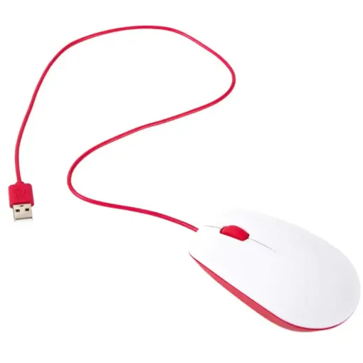 The official Raspberry Pi Mouse is a 3-button optical mouse with a scroll wheel, designed for comfortable use with your Raspberry Pi.