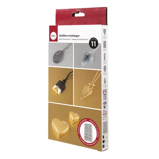 The Rayher Silicone Mould Pendants (11 Moulds) is a versatile and reusable mould set designed for crafting beautiful pendants. Made from flexible and durable silicone, it ensures easy demoulding and precise details. Ideal for use with Raysin, resin, creative cement, and wax, this mould allows you to create stylish jewellery, ornaments, and decorative pieces for various DIY projects.