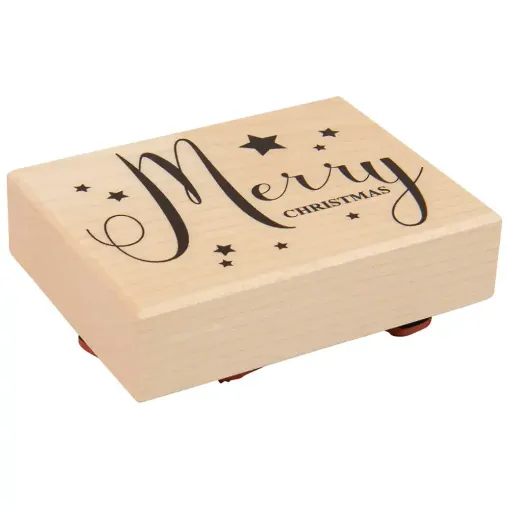 Crafted from premium Canadian maple wood, the Butterer wooden stamp features the festive message "Merry Christmas" on a 6 x 8 cm block, with the stamp motif slightly smaller by approximately 5 mm. Its exceptional quality ensures effortless use: simply press the stamp onto an ink pad, apply it, and you're done! The stamp's high-quality surface evenly absorbs the ink, guaranteeing a flawless impression. Moreover, the natural rubber used in the stamp plate remains supple, ensuring perfect results over many years, even with frequent use.