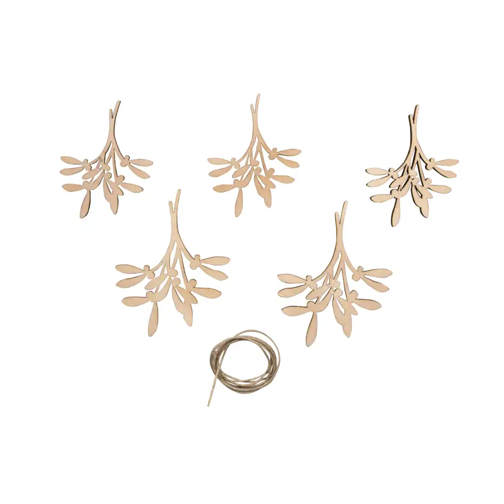 Rayher Wooden Decoration Mistletoe (Pack of 5)