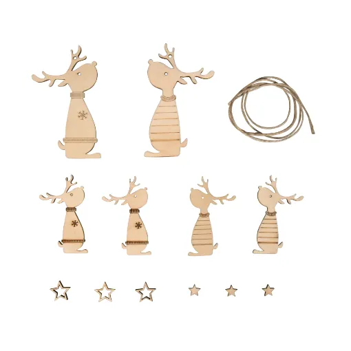 Rayher Wooden Decoration Reindeer & Stars 12 Pack