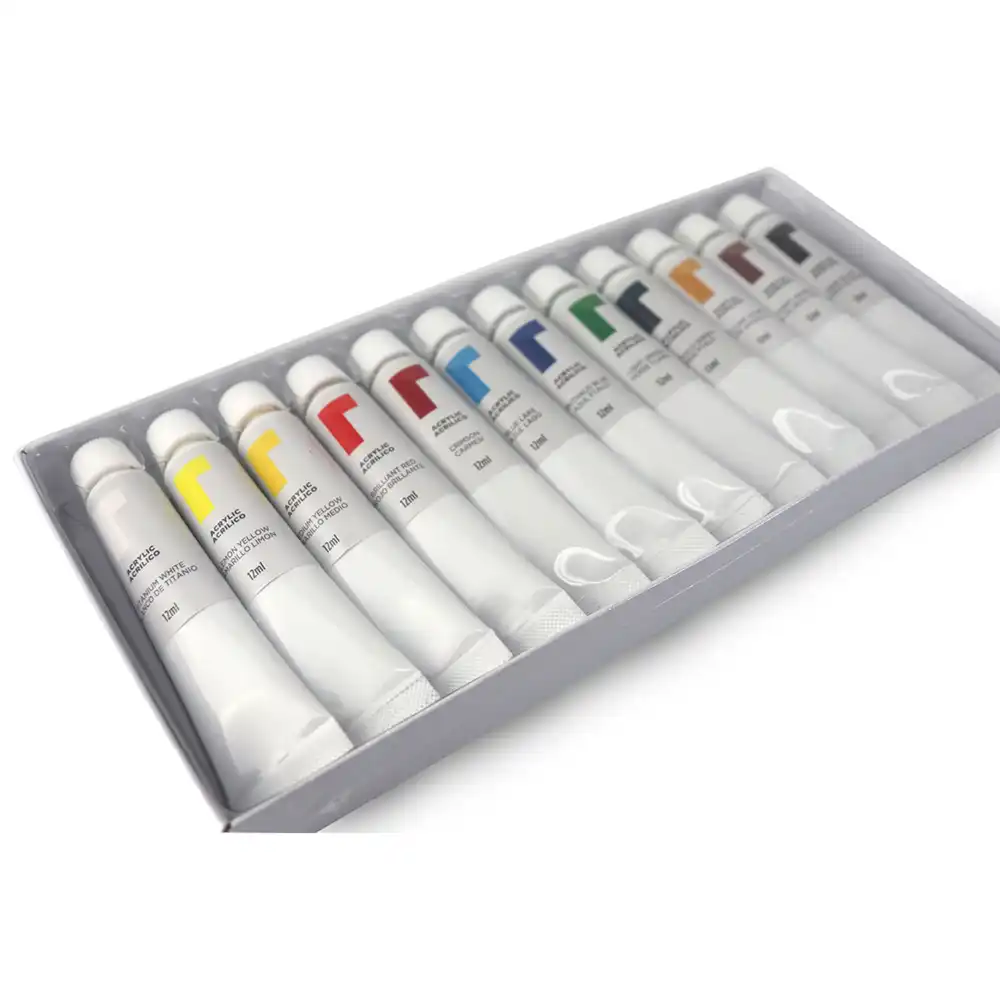 • Pack of 12 assorted colours - Titanium White, Lemon Yellow, Medium Yellow, Brilliant Red, Crimson, Blue Lake, Phthalo Blue, Light Green, Phthalo Green, Yellow Ochre, Burnt Sienna &Mars Black
