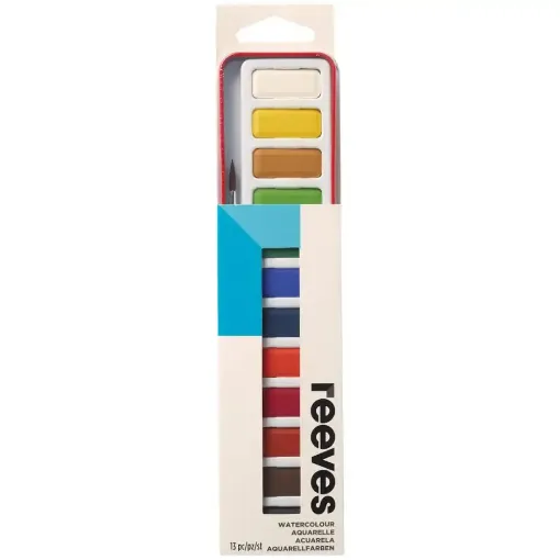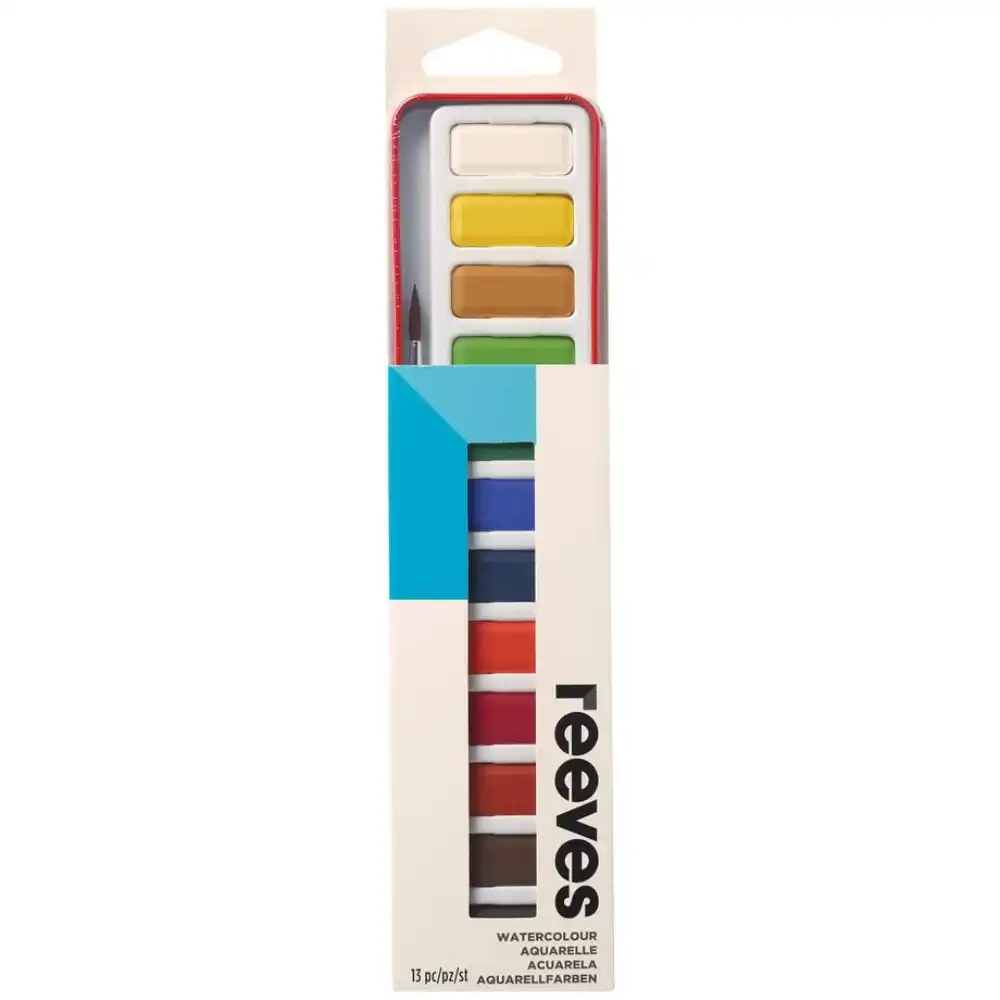 • Watercolours and brush contained within the iconic Reeves red tin