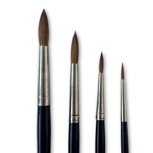 Richard Oliver Pure Red Sable Round Range The sable brush swells to absorb maximum water capacity and then re-shapes to maintain its brilliant point. Very suitable for students looking for a high-quality brush.