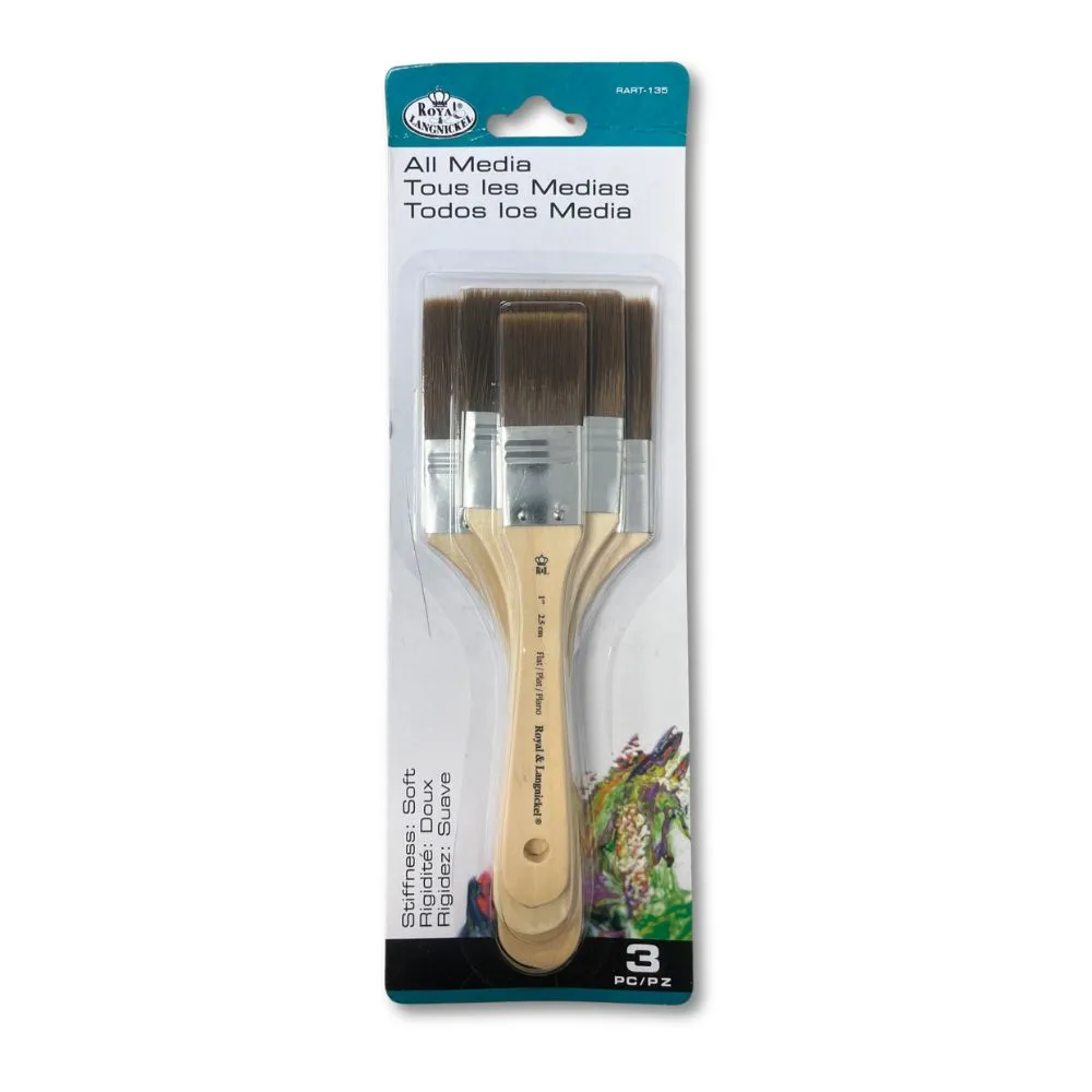 Royal & Langnickel Large Area Flat Brush Set Brown Taklon 3 Pack