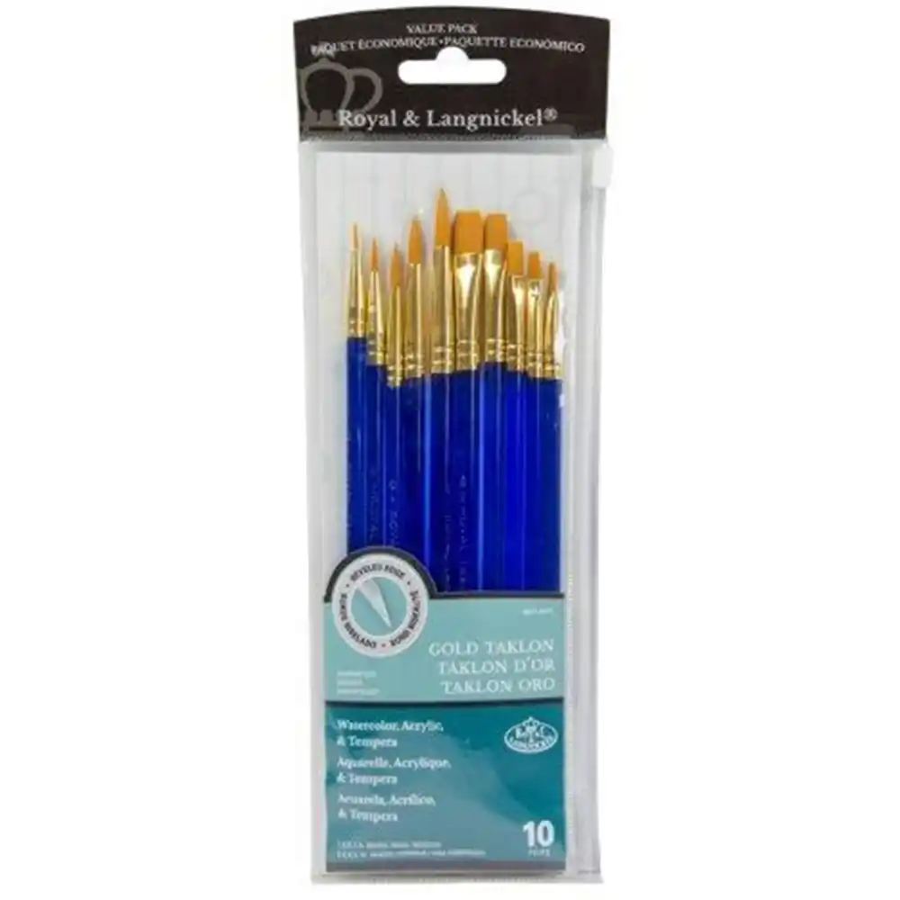 This 10 pack contains hog bristle brushes for oil painting, synthetic hair brushes for watercolours and synthetic bristle brushes for acrylic masterpieces.