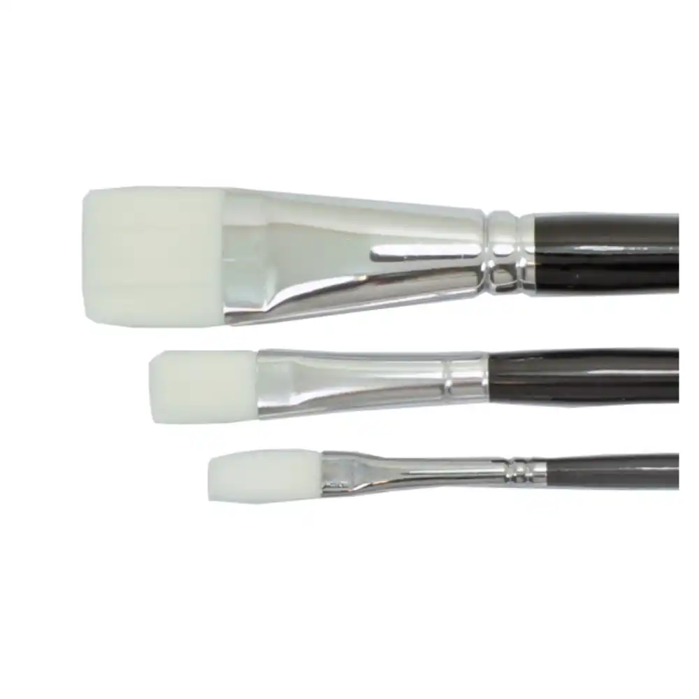 The flat shape of the brush makes it ideal for applying broad strokes, washes, and fills. The brushes also have a comfortable, ergonomic handle that provides a secure grip and makes them easy to use for extended periods of time.