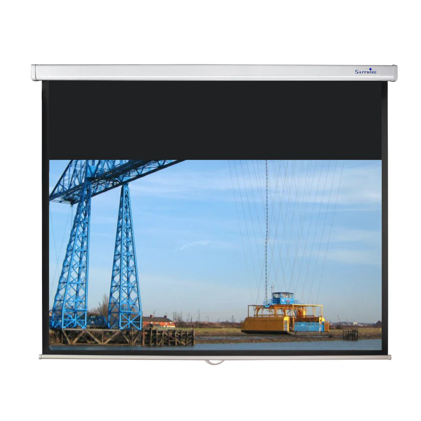 Enhance your viewing experience with the Sapphire Wall Screen 4:3 (1710x1280). The picture is framed with a black border to boost image clarity, while a robust retraction mechanism and weighted bottom bar keep the screen taut and wrinkle-free. The screen locks securely at any height, ensuring perfect positioning every time. The sleek, slimline white casing blends seamlessly into any setting, and the integrated pull handle offers effortless operation. Sapphire guarantees exceptional quality, backed by an impressive 3-year warranty.