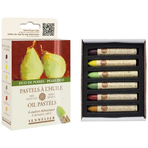 The Sennelier Oil Pastels - Pears Duo Set of 6 is a beautifully curated mini collection inspired by the rich, warm tones of ripened pears. This set includes six highly pigmented oil pastels, offering smooth, creamy application and exceptional lightfastness. Developed in collaboration with Picasso, Sennelier oil pastels are renowned for their buttery consistency and brilliant colours, making them ideal for layering, blending, and expressive mark-making. The Pears Duo palette is perfect for capturing organic still-life compositions, autumn tones, or experimenting with warm, natural colour schemes.
