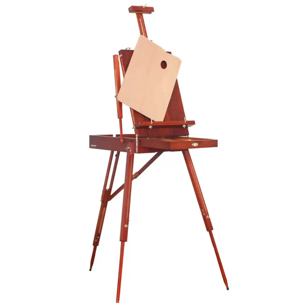 French easels are for the travelling artist. French easels contain a sketch box, an easel, and a canvas carrier in a smaller package. The sketch box holds paint supplies and a palette, and the legs and canvas arm collapse for ease of travel. Many of these easels are excellent for painting outdoors. If you paint on location, you should consider using a French easel.