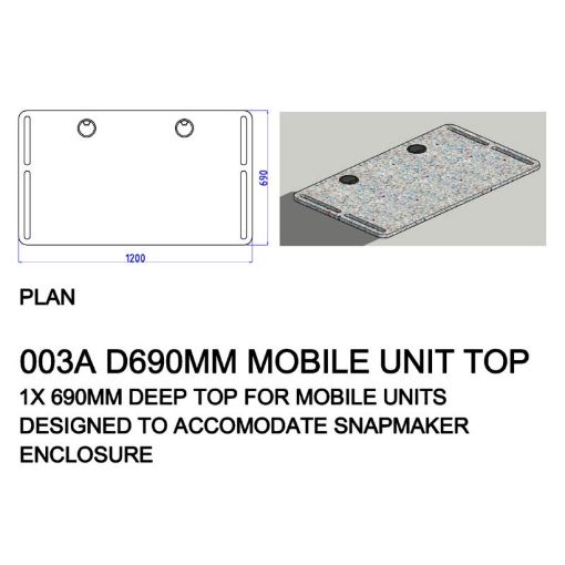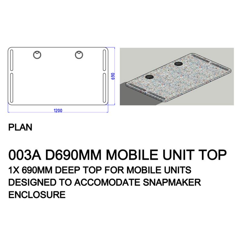 • If you would like to have a mobile unit that will accommodate the Snapmaker A350T 3 in 1 3D Printer Bundle then you will need a deeper worktop to allow for the size of the enclosure. You can order the deep top which is 690mm instead of the standard 590mm to cater for the footprint of the enclosure. This top comes with handle to allow for easy moving.