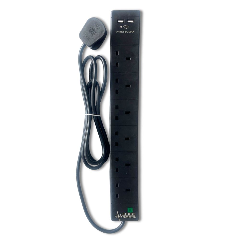 SG Makerspace Power Module (Black 6 socket)/( 2 USB PORT )