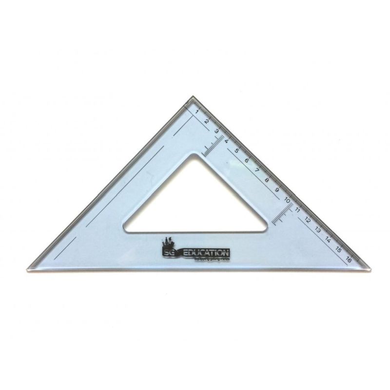 SG Set Squares 45º 25cm. Better quality set squares made in Germany from high impact polypropalene. Markings start from edge/corner. Blue Tinted transparent material.