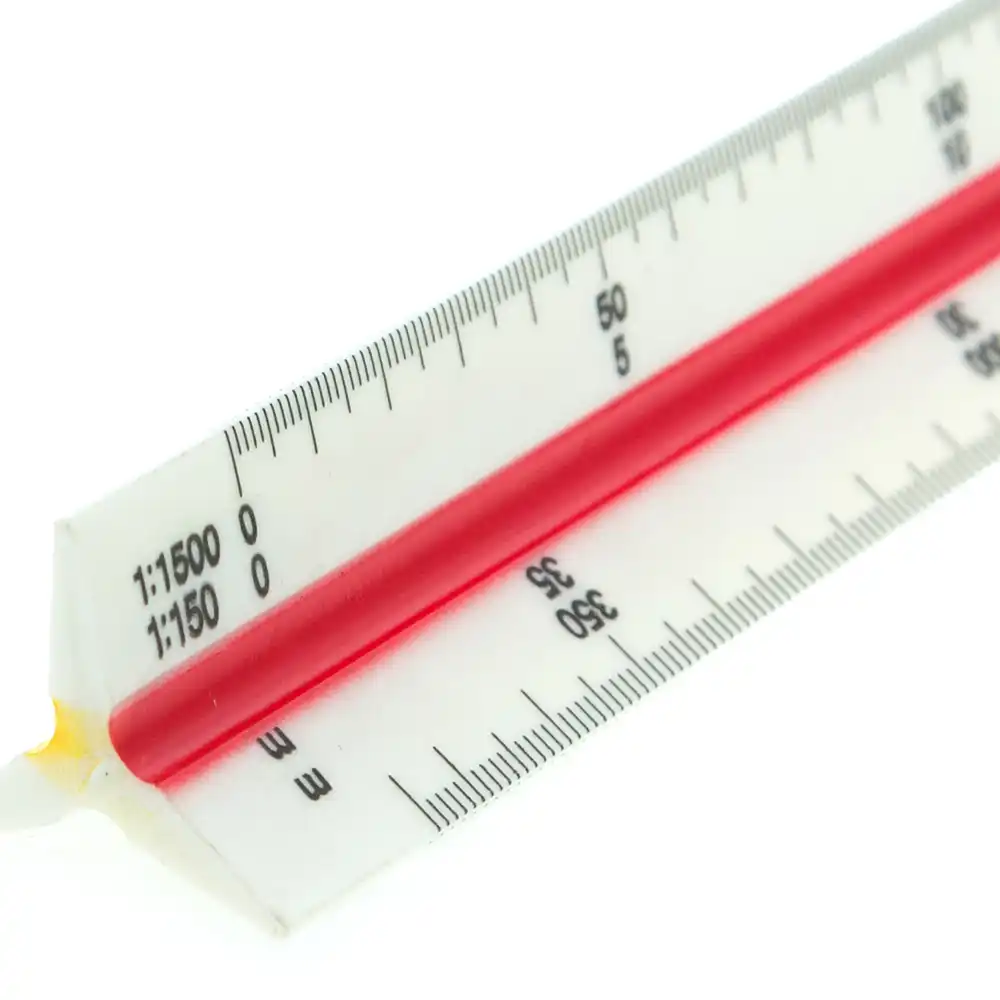 The triangular scale ruler is a fundamental tool for architects, engineers, and designers. Its six sides feature different scales, making it convenient for measuring and drawing accurately scaled plans and blueprints. The durable construction and clear markings ensure reliable and efficient use in various technical and creative fields.