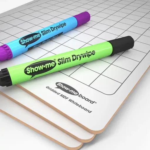 Calculate, graph, chart, create tables, plan experiments and more in Maths, Science and Geography with these genuine Show-me quality drywipe boards. Each A4, double-sided drywipe board features a grid pattern that mimics students' maths workbooks on one side, and a plain reverse.