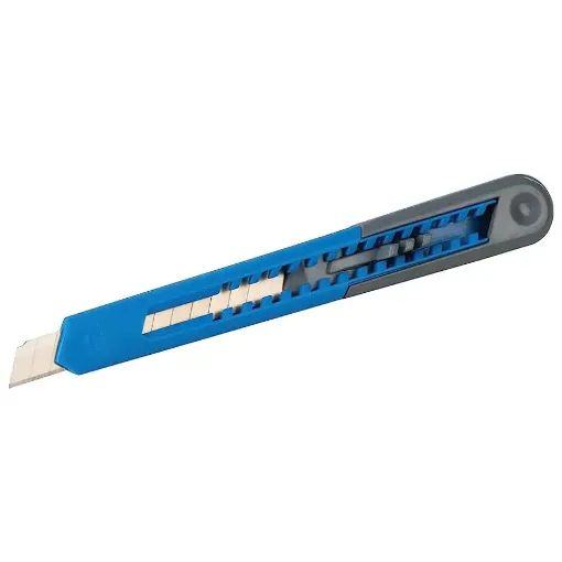 9mm snap-off knife with a strong metal internal frame and comfortable plastic handle. Contoured design easy to use easy in the hand. Perfect for decorators and craft use.
