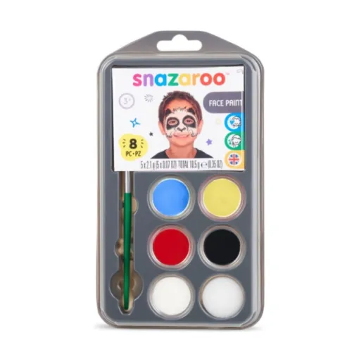The Snazaroo Basic Convenience Set is the perfect face painting kit for beginners and professionals alike. This easy-to-use set includes a selection of vibrant, skin-friendly face paints, ideal for parties, events, and creative fun. The paints are water-based, hypoallergenic, and non-toxic, making them safe for children and adults. The set comes with essential colors that blend smoothly and dry quickly, allowing for hassle-free application and easy removal with just soap and water.
