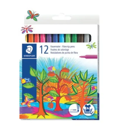 The Staedtler Double-Ended Fibre Tip Pens 36 Pack offers a versatile set of colouring pens with two tips in one. Each pen features a fine tip for detailed drawing and outlining, and a broad tip for colouring large areas, making them perfect for school, home, and creative projects.