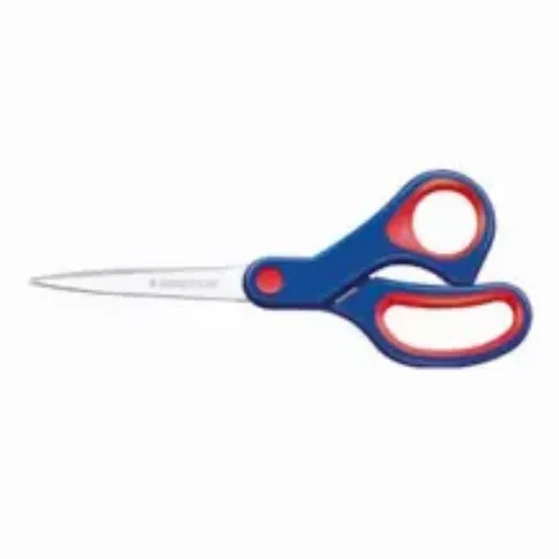 These scissors are ideal for school, home or office use. They have a soft ergonomic grip zone. The blades are rounded for extra safety, are rust-proof and have a long service life. It is perfect for cutting paper, fabric and light cardboard.