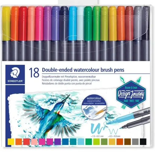 This is a pack of 24 Staedtler Watercolour Pencils in assorted colours, for colouring drawing, and creating beautiful watercolour paintings. These watercolour pencils are very versatile. They have water-soluble lead, so can be used dry as ordinary colour pencils, or you can brush on a little water to create different shades and a fluid watercolour effect.