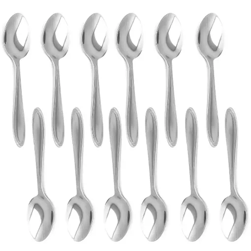 Made of gleaming stainless steel with attractive satin-finished handles, these Scandinavian style dessert spoons are eye-catching, practical and hard-wearing. Available in packs of 12, they are a great value way to keep your work kitchen or canteen fully stocked at minimal cost. They are dishwasher-proof and ideal for board meetings, training days and other catering events where smart, matching cutlery is a must.