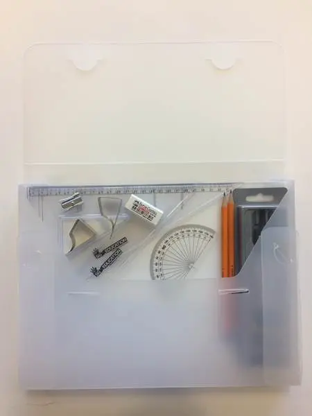 Strong Poly Box with 2 Part Compass, Clips & SG Set Square