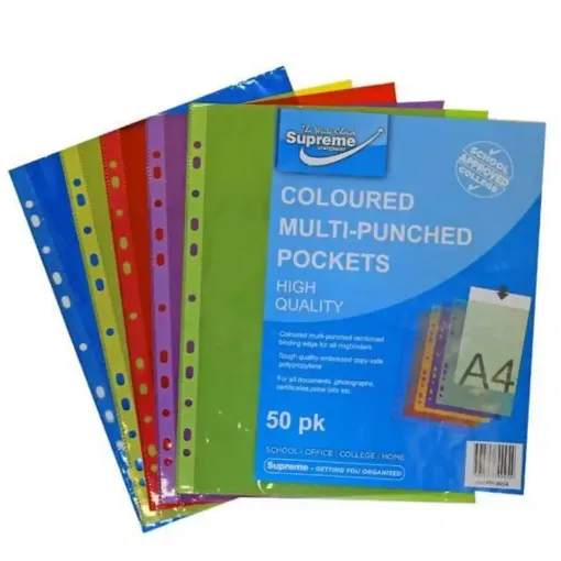 • Coloured, multi-punched reinforced binding edge compatible with all ring binders