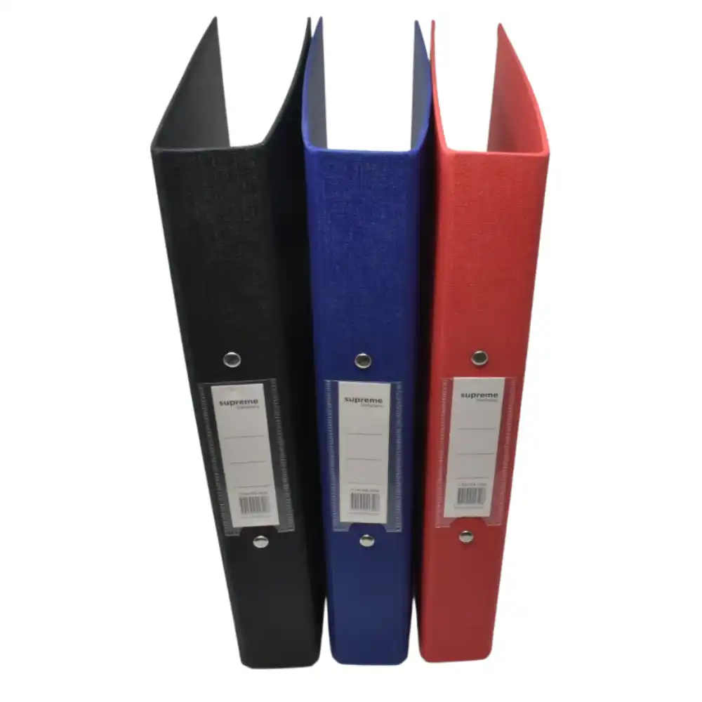 The Supreme Ring Binder A4 – Black is a durable and practical solution for organising documents, notes, and reports. Designed to hold A4-sized paper, this sturdy binder features a strong ring mechanism to keep pages securely in place. Its sleek black cover provides a professional look, making it ideal for office, school, or home use.