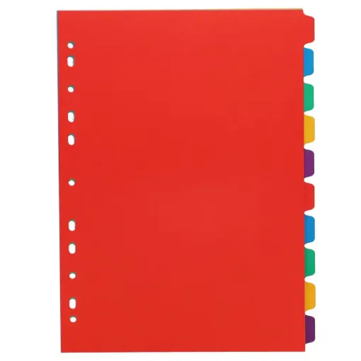 Subject dividers are essential organisational tools designed to help categorize and separate content within a larger document or filing system. These 10 Part dividers make it easy to locate and reference specific information quickly. Whether used in binders, notebooks, or files, subject dividers offer a systematic approach to keeping documents organized and accessible. With their customizable labels and durable construction, they're indispensable for students, professionals, and anyone seeking efficient document management.