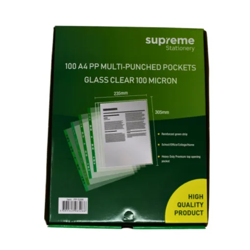 Supreme A4 Punched Pocket Clear 100mic - 100 Pack