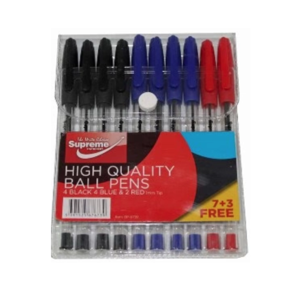 The BIC 4-Color ball pen adds versatility to your everyday writing. You are able to switch between four colors at the click of your thumb. This is a perfect pen when recording data in different colors. The colors are: blue, black, red or yellow