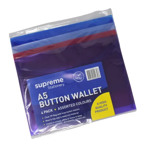 Supreme A5 Button Wallet 4 Pack – durable, transparent wallets for document organisation and storage.