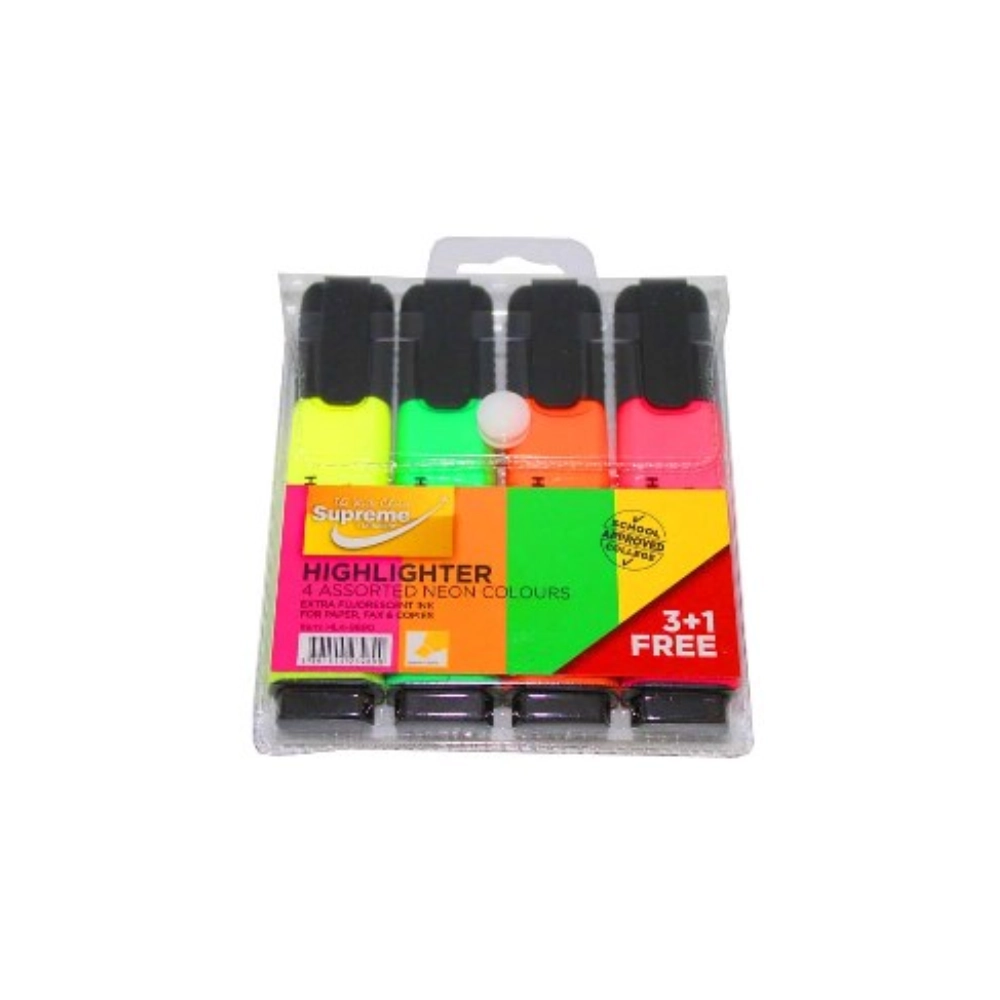 Supreme Highlighter 4 Pack Assorted Colours