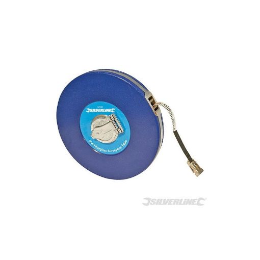 Fibreglass Surveyors Tape Durable, vinyl-coated steel casing and 13mm wide fibreglass tape coated with PVC for durability and easy cleaning. Folding metal claw and handle. Impervious to water, crease-resistant and marked with metric and imperial graduations. Class 3 accuracy.