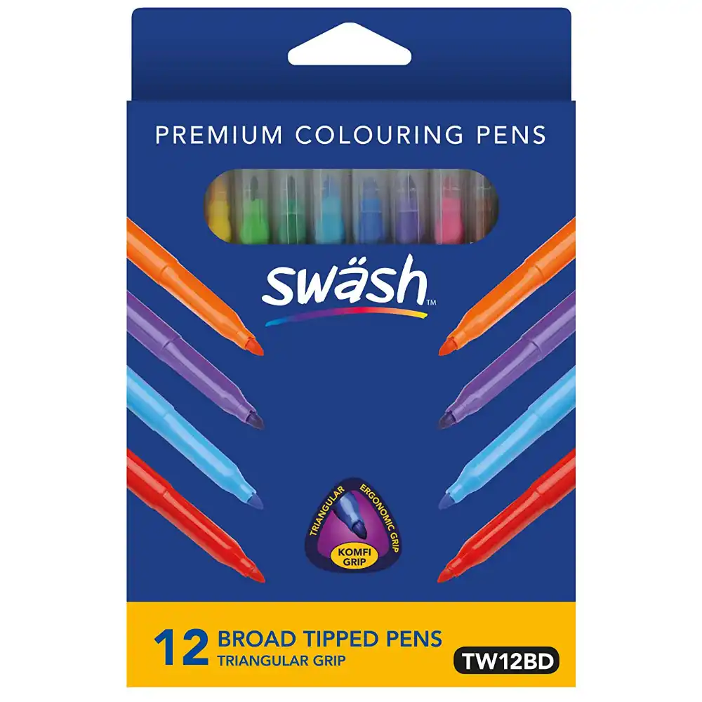The Staedtler Double-Ended Fibre Tip Pens 36 Pack offers a versatile set of colouring pens with two tips in one. Each pen features a fine tip for detailed drawing and outlining, and a broad tip for colouring large areas, making them perfect for school, home, and creative projects.