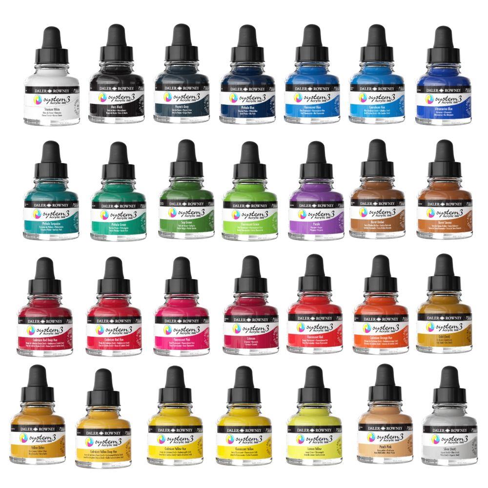 Discover the vibrant and versatile System 3 Acrylic Ink 29.5ml Range – perfect for artists who love to experiment with bold, flowing colour. These pigment-based inks offer excellent lightfastness, strong adhesion, and are fully intermixable with other System 3 products.