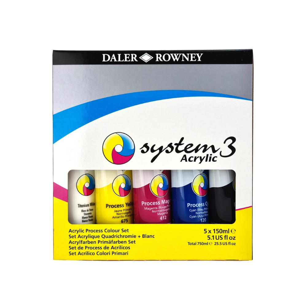 The System 3 Acrylic Set includes five 150ml tubes of premium-quality acrylic paint, known for their rich pigments and smooth consistency. These versatile paints are fast-drying and can be used straight from the tube or thinned with water for washes, making them perfect for layering, blending, and various techniques on canvas, paper, and other surfaces. Durable and lightfast, the System 3 Acrylics offer lasting color that remains vibrant over time, ideal for artists of all skill levels. This set provides a fantastic palette to spark creativity and elevate any art project.