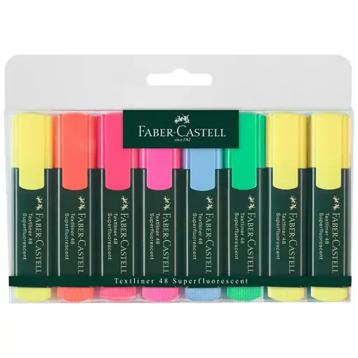 Highlighters for schools with a safety protector for breathing if swallowed. Filled with colourful pigment inks in 4 colours and manufactured from materials that provide resistance against drying for at least 3 years. Intended for highlighting of texts on all paper types. Push-in resistant wedge-shaped tips, 1-4 mm trace width, 250 m trace length.