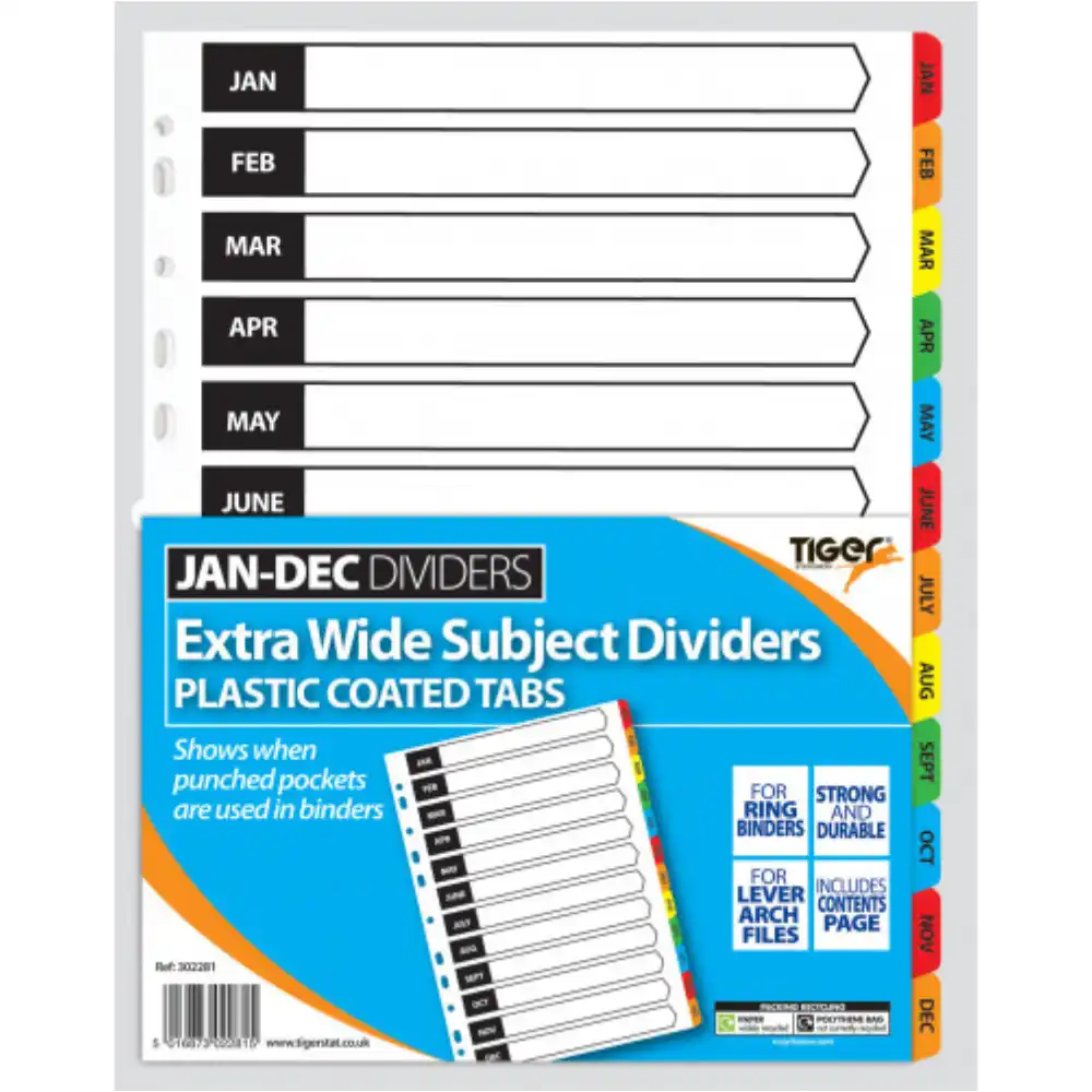 Tiger A4 Extra Wide Jan - Dec Subject Dividers