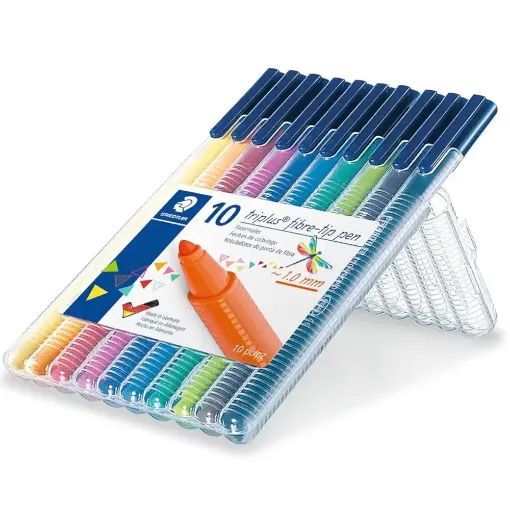 The Staedtler Double-Ended Fibre Tip Pens 36 Pack offers a versatile set of colouring pens with two tips in one. Each pen features a fine tip for detailed drawing and outlining, and a broad tip for colouring large areas, making them perfect for school, home, and creative projects.