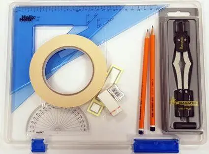 Tuff Box with 2 Part Compass, Tape & Helix Set Square