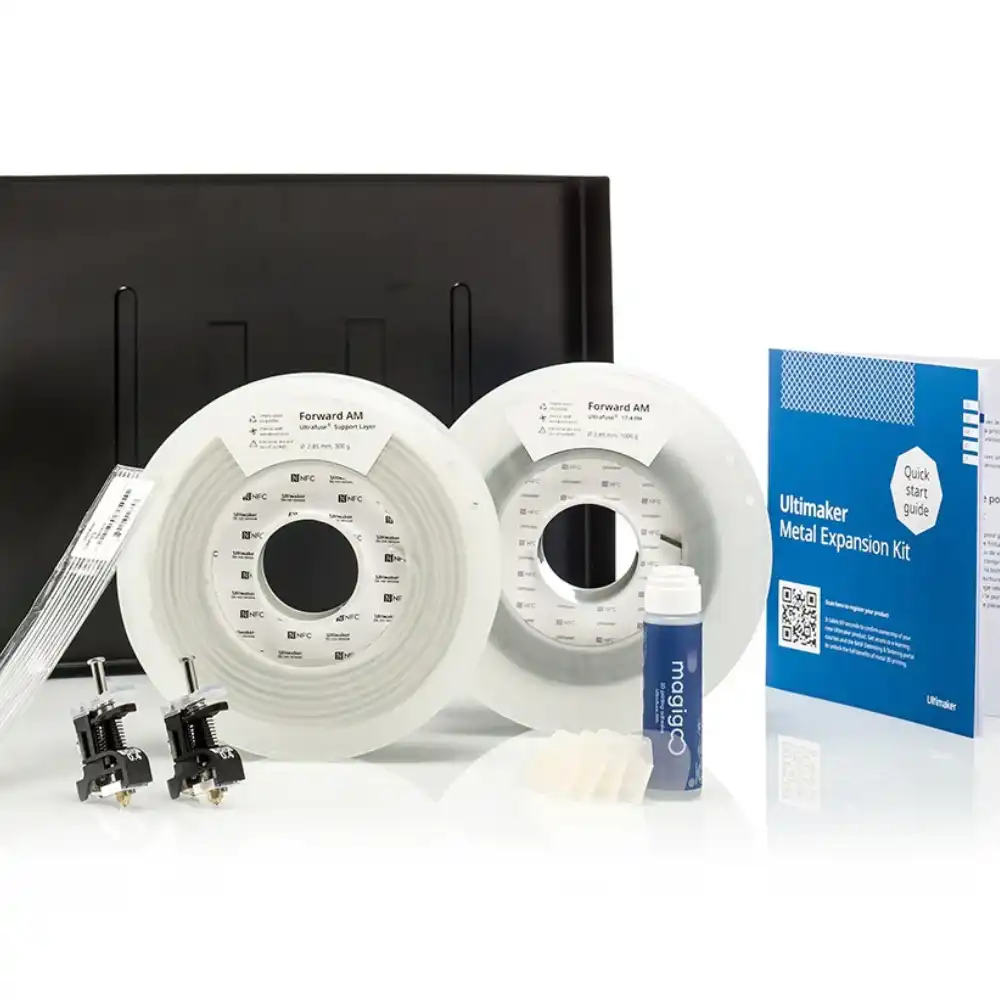 Explore a new range of metal 3D printing applications by upgrading the Ultimaker S5 with the Metal Expansion Kit. Its simple workflow makes creating stainless steel parts easier, more efficient, and affordable. The Ultimaker metal expansion kit provides access to software optimizations, post-processing services, and extensive e-learning modules. Comparing the Ultimaker S5 and metal expansion kit to CNC and other additive methods, user can save up to 90% creating the metal tools and parts user need.