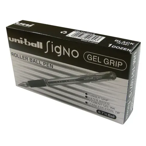 Supplied in a pack of 12, the Uniball Signo Rollerball Gel Grip Pen is packed with quality black gel ink for smooth operation. These gel pens feature a twin ball mechanism, unique to Uniball, that prevents ink leaking - no messy accidents. The quick-dry ink is less prone to smearing, making it ideal for use by left handed writers. The Signo Gel Grip features a comfortable rubberised grip for improved ergonomics and control.