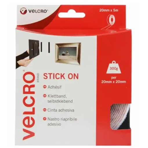 VELCRO Stick On Tape 20mm x 5m - White (Holds 300g)