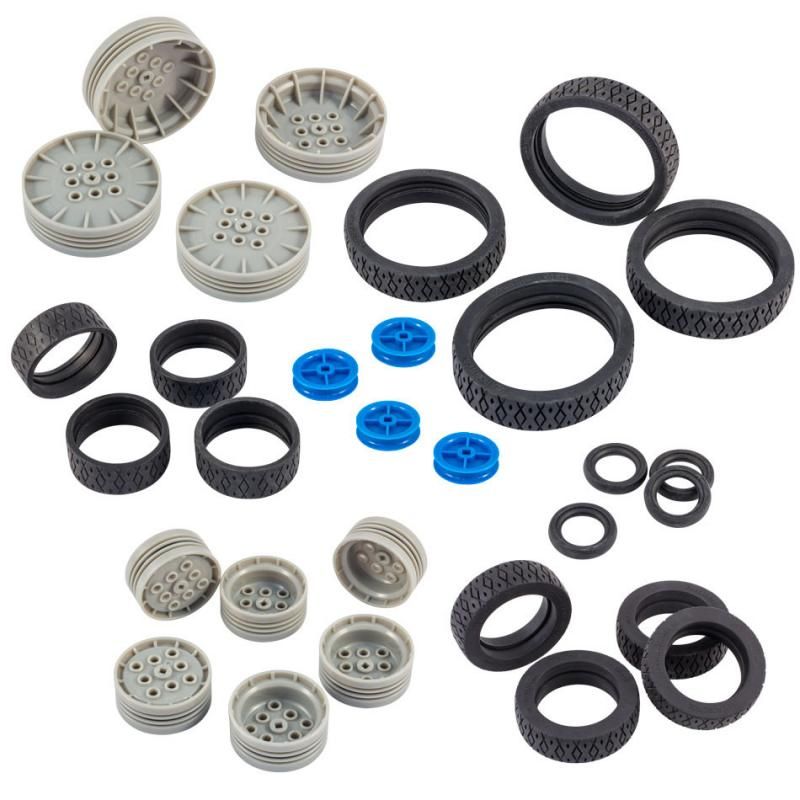 Four different size tyre diameters and two different size wheel hubs. Tyre size is printed on tyres for easy reference. (6) Small Wheel Hub (4) Large Wheel Hub (4) 20mm Diameter Pulleys (4) 100mm Travel Rubber Tire (4) 160mm Travel Rubber Tire (4) 200mm Travel Rubber Tire (4) 250mm Travel Rubber Tire 6x Small Wheel Hub 4x Large Wheel Hub 4x 100mm Travel Rubber Tyre 4x 160mm Travel Rubber Tyre 4x 200mm Travel Rubber Tyre (4) 250mm Travel Rubber Tyre