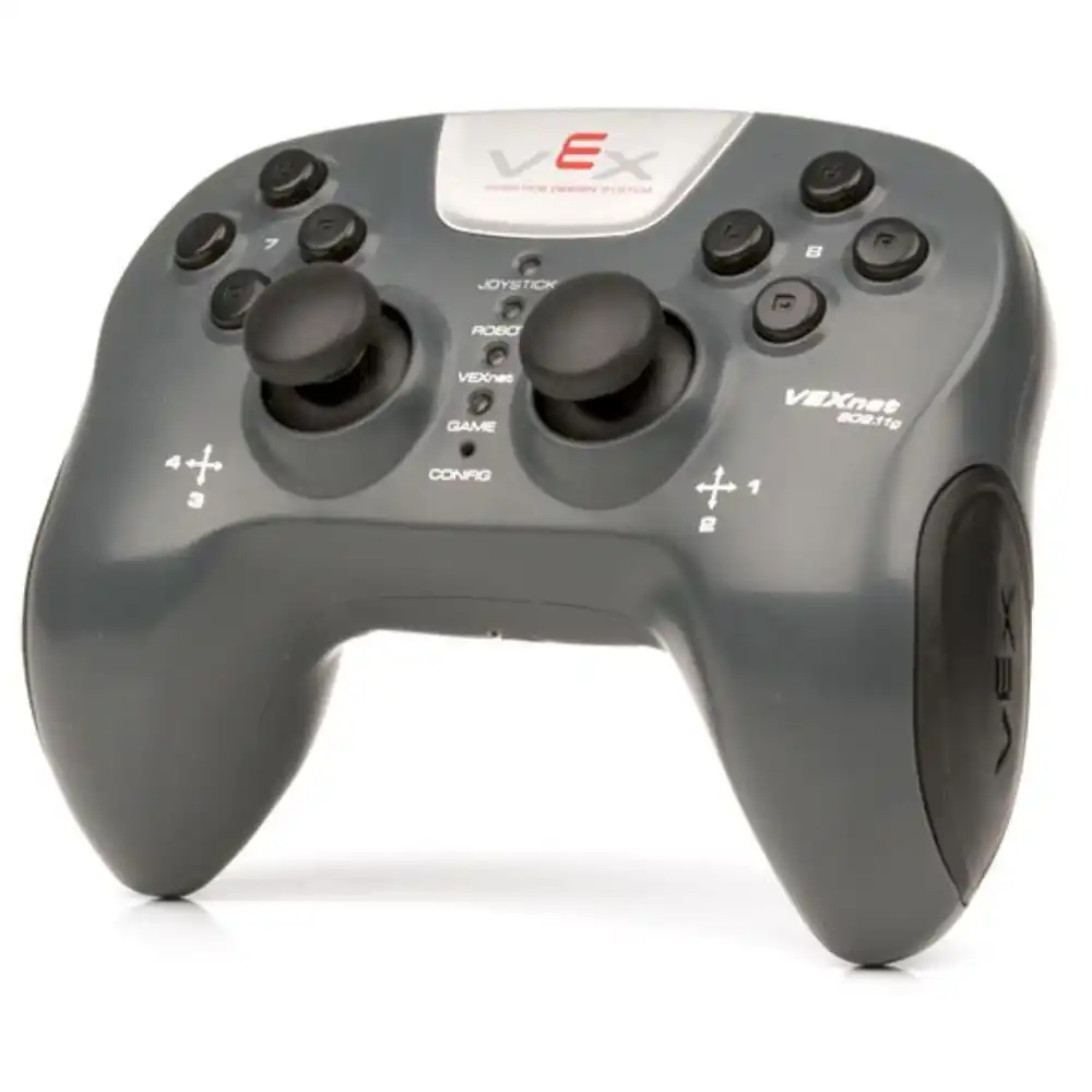 The VEXnet Joystick is the most intuitive way to wirelessly control a VEX EDR robot. With a familiar layout inspired by video game controllers, the VEXnet Joystick features a 2-axis accelerometer, 8 face buttons, and 4 "trigger" buttons. Powered by AAA batteries or through the VEXnet Joystick Power Adapter.
